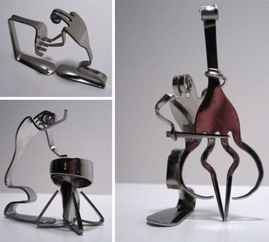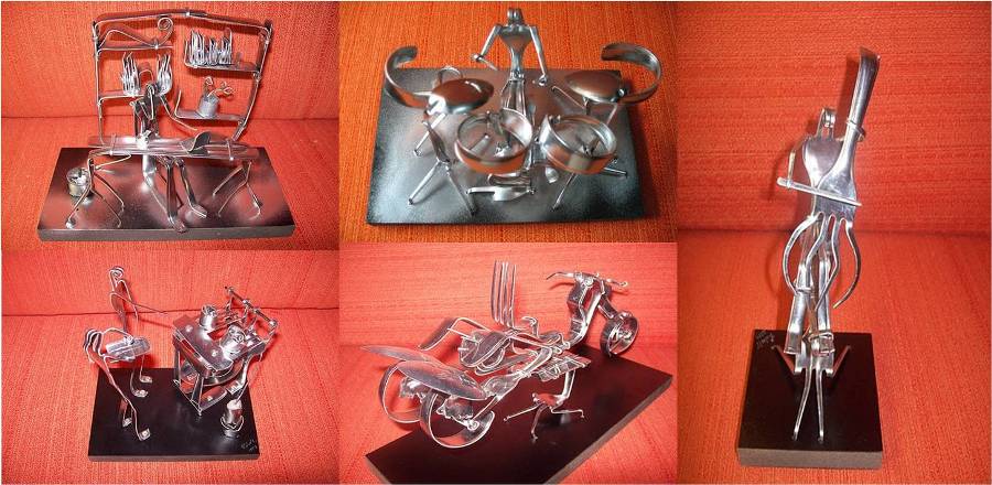 Hoje deixo aqui, esculturas feitas com um dos nossos utensilios domésticos mais banais, os garfos. Quando falamos em garfos vem à nossa mente automáticamente a ideia de refeição, de comida, mas para além desta utilidade, os garfos podem dar origem a peças de arte impressionantes.