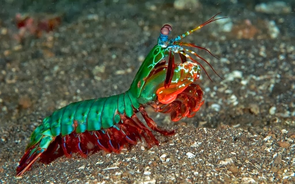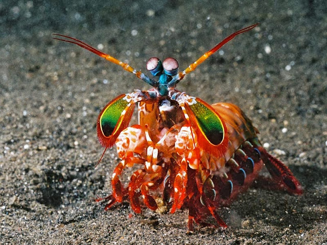 Os camarões Mantis ou stomatopods são crustáceos marinhos, têm uma visão extraordinária e são predadores letais.