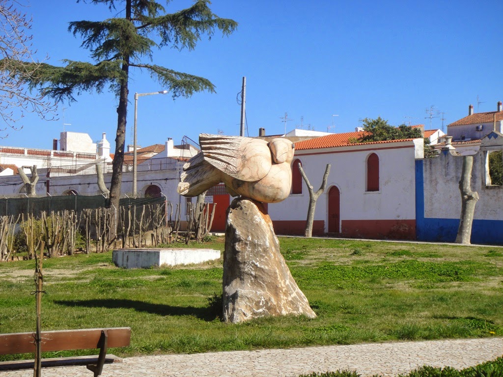 Numa das voltinhas encontramos a Ermida de São João Baptista da Carrasqueira (séc. XVI) e uma linda escultura de uma pomba em mármore rosa.