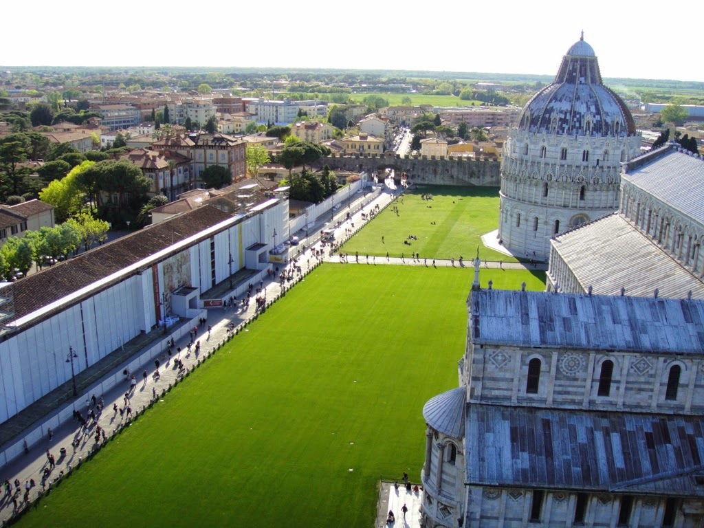 Entramos na Piazza dei Miracoli através da Porta Nuova inserida nas famosas muralhas que datam do século XII e que cercam praticamente toda a parte histórica da cidade de Pisa.