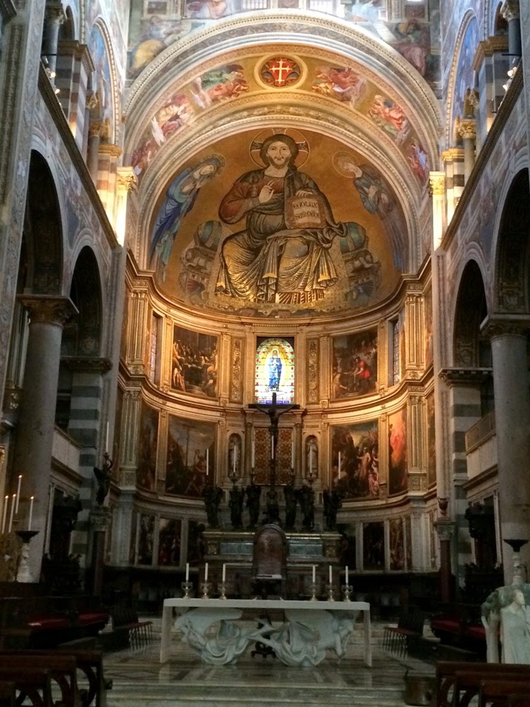 Em frente está a Catedral (Duomo), dedicada à Virgem Maria foi construída com o mármore branco das montanhas de S. Giuliano. A sua construção iniciou-se em 1064, sobre a catedral pré-existente datada de 1006.