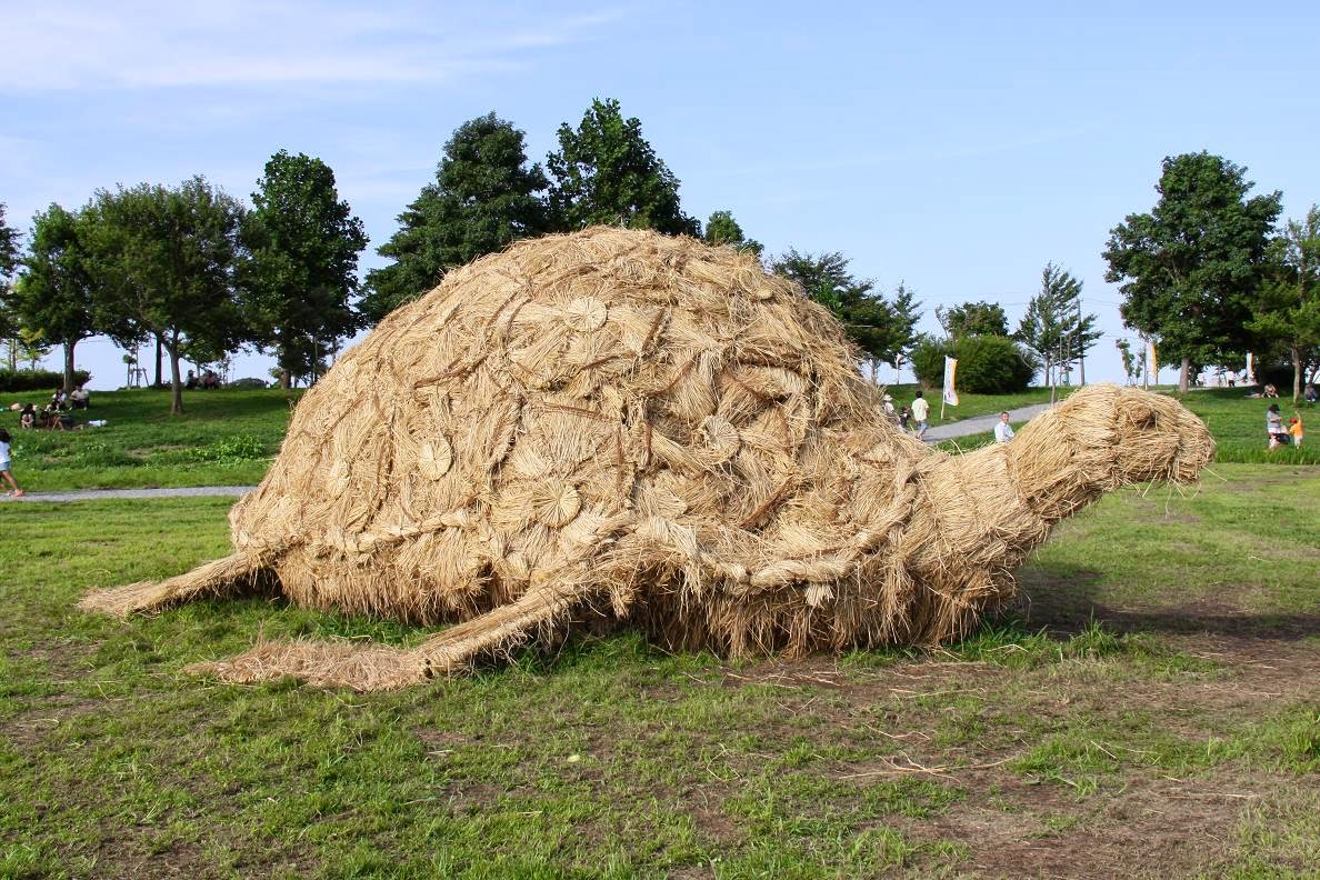 No Japão, após a colheita do arroz, a palha deixada para trás é aproveitada por artistas, para criar gigantescas esculturas de palha.