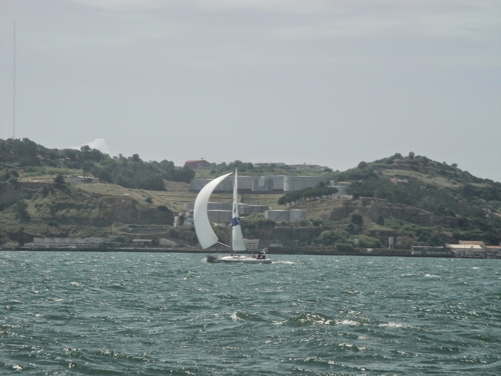 Música apropriada no barco e uma incrível entrada nas águas do Tejo