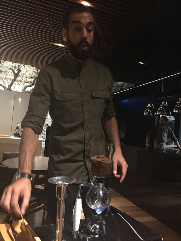 Quando chegou o momento do café foi outra agradável surpresa. Preparado junto à mesa, era café de balão sendo a mistura de lotes feita pelos elementos da equipa, era muito aromático e delicioso.