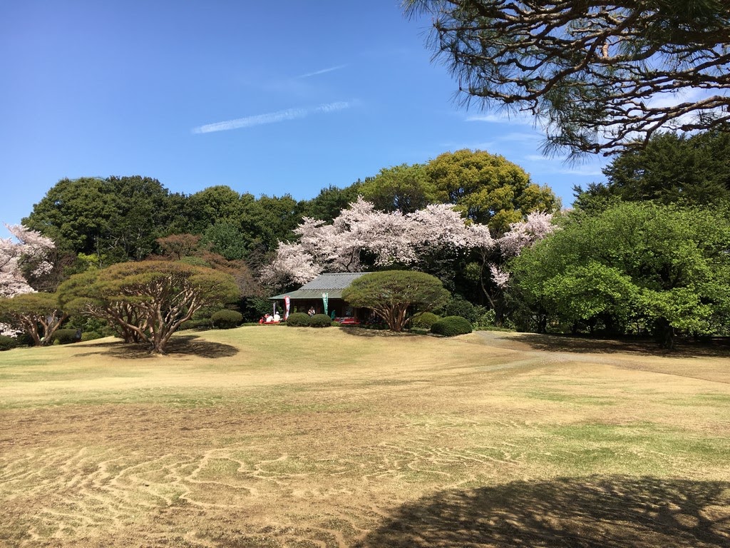 Tem mais de 20.000 árvores, incluindo cerca de 1.500 cerejeiras que florescem a partir do final de março (Shidare ou Weeping Cherry), até o início de abril (Somei ou Tokyo Cherry), e no final de abril (Kanzan Cherry). Entre as muitas outras árvores que ali se encontram estão os majestosos cedros do Himalaia, que sobem acima do resto das árvores no parque, ciprestes, e plátanos, que foram os primeiros a ser plantados nos jardins imperiais do Japão.