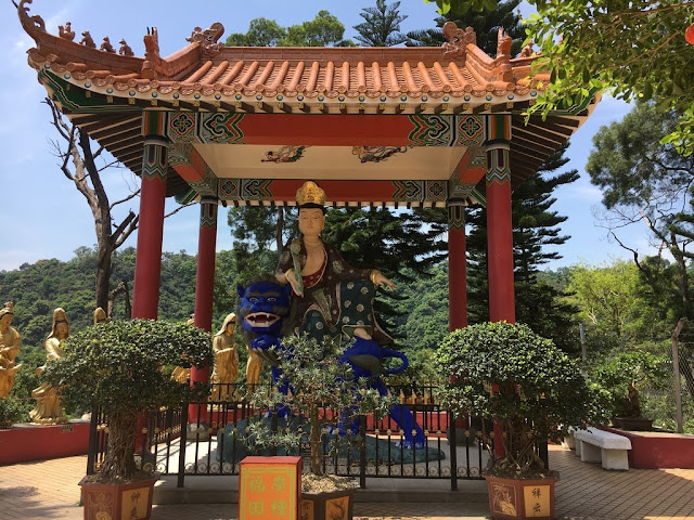 No centro está o Kwun Yam Pavilion - Pavilhão da Deusa Kwun Yam (Deusa da Misericórdia), da parte detrás está a estátua do guardião do templo.