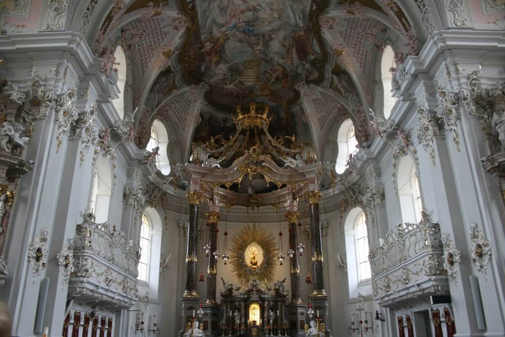 O interior tem um ar único e elegante, apresentando estuques rococó extravagantes de Franz Xaver Feichtmayr e Anton Gigl, juntamente com murais de teto, de Matthaus Gunther, retratando cenas da vida da Virgem Maria. A bela estátua de arenito da Virgem Maria no altar-mor é objeto de peregrinação desde a Idade Média.