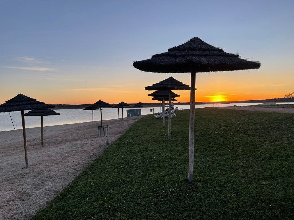 Após colocarmos as nossas coisas no quarto, decidimos sair para ir ver o pôr do sol na Praia Fluvial de Mourão que ficava apenas a cerca de 5 minutos de carro. Como fomos um pouco antes deu para descansar e apreciar toda aquela paisagem tranquila e bela. O pôr-do-sol foi realmente espetacular!
